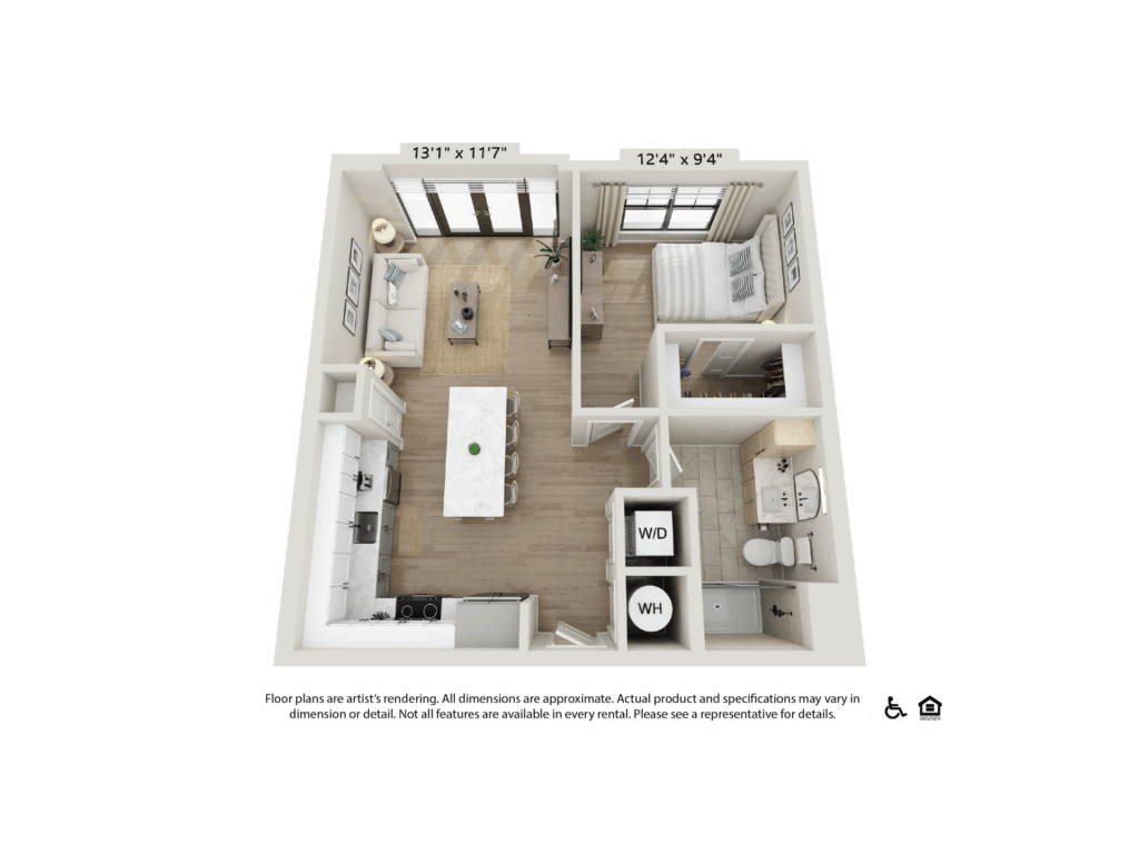 Floor plans are artist’s rendering. All dimensions are approximate. Actual product and specifications may vary in dimension or detail. Not all features are available in every rental. Please see a representative for details.
