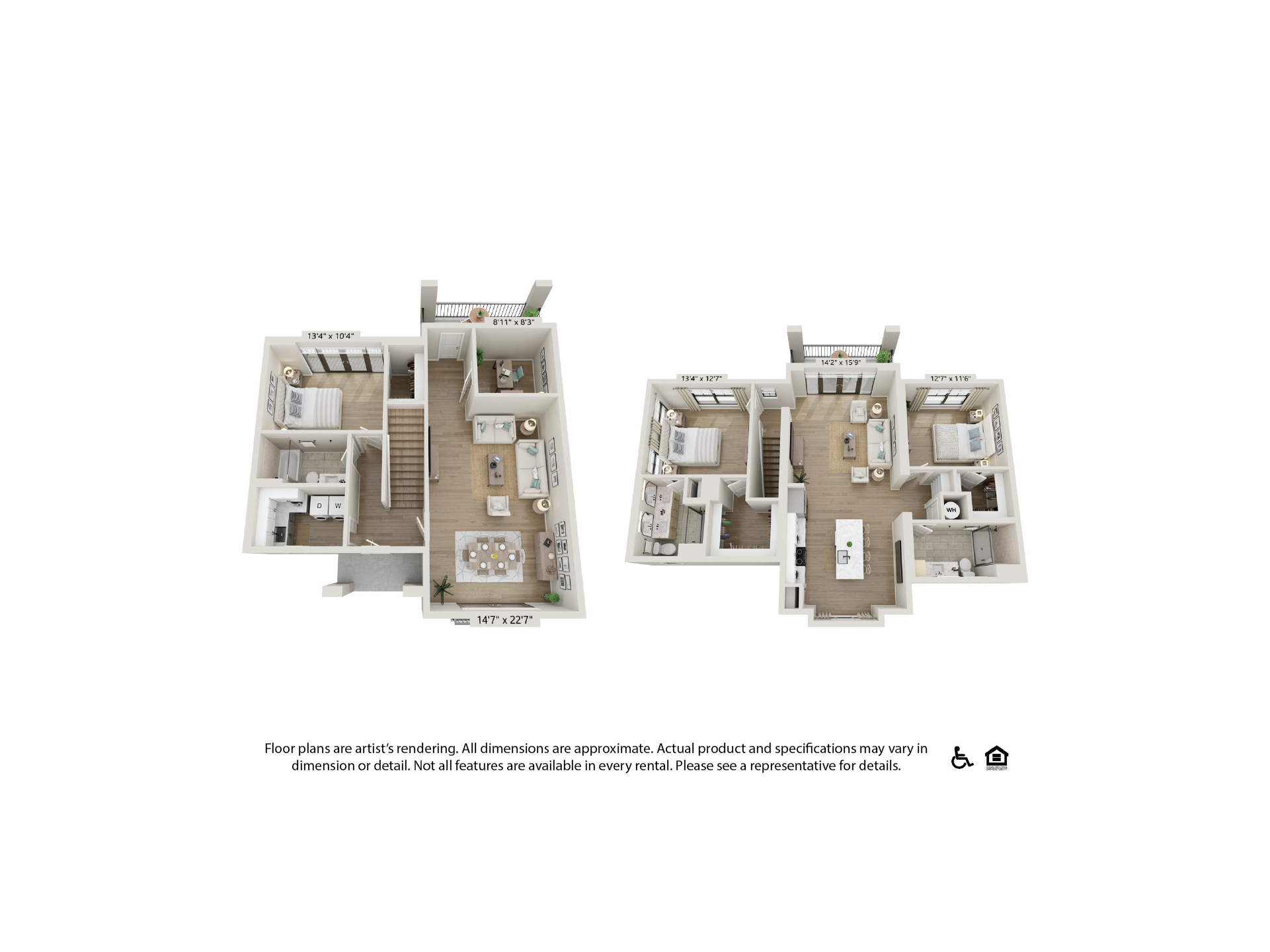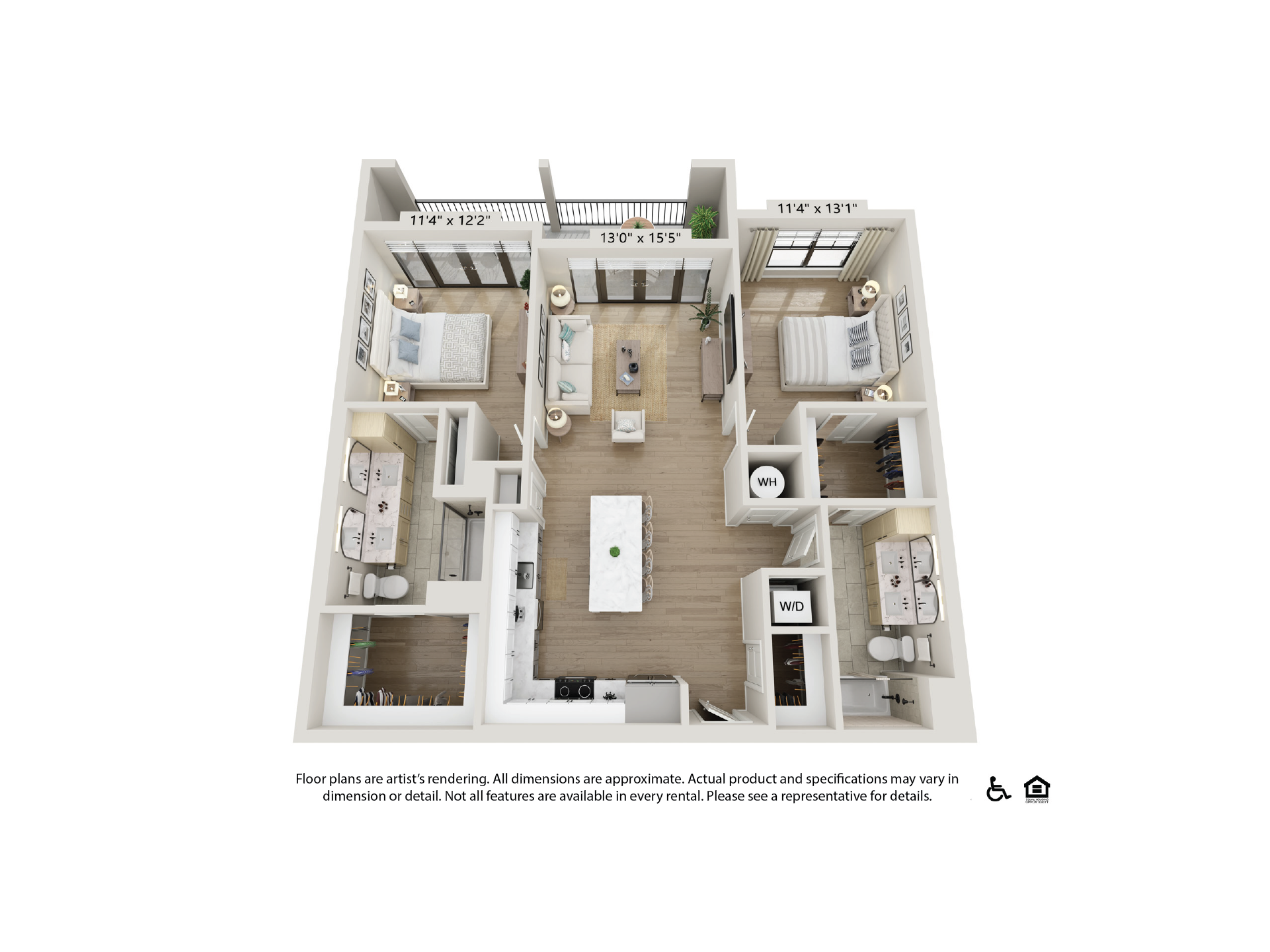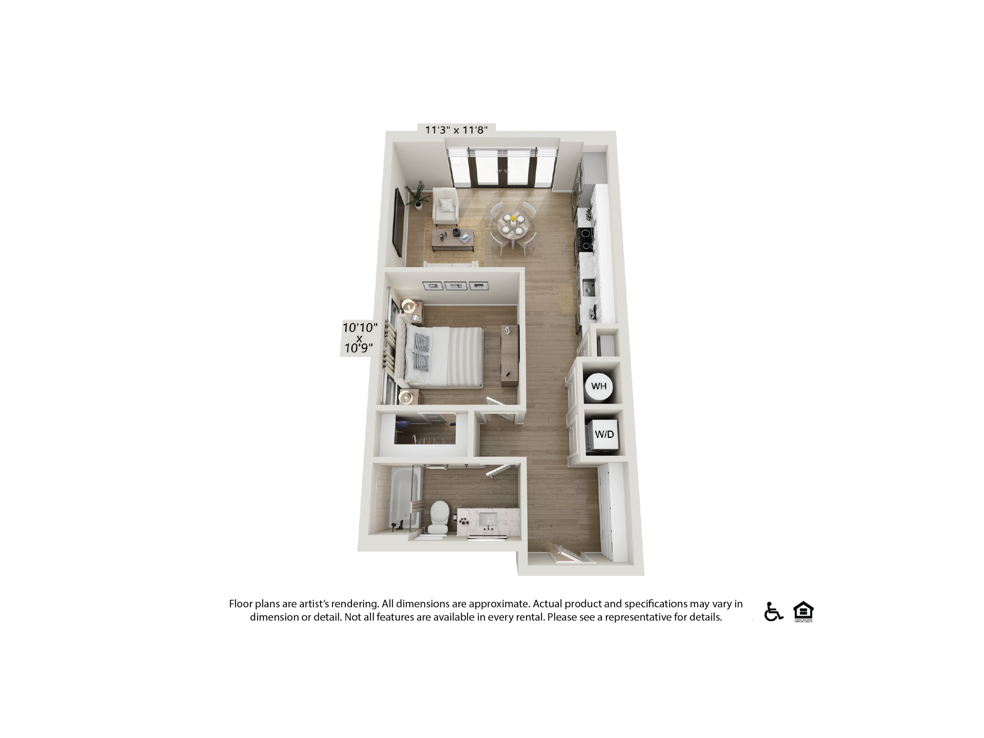 Floor plans are artist’s rendering. All dimensions are approximate. Actual product and specifications may vary in dimension or detail. Not all features are available in every rental. Please see a representative for details.
